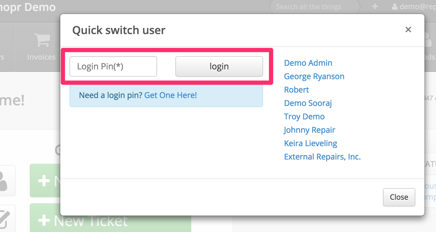 Now if you have a bunch of users and need to switch between them quickly you can go to the user menu and click Switch User - and type a short pin number to switch users.